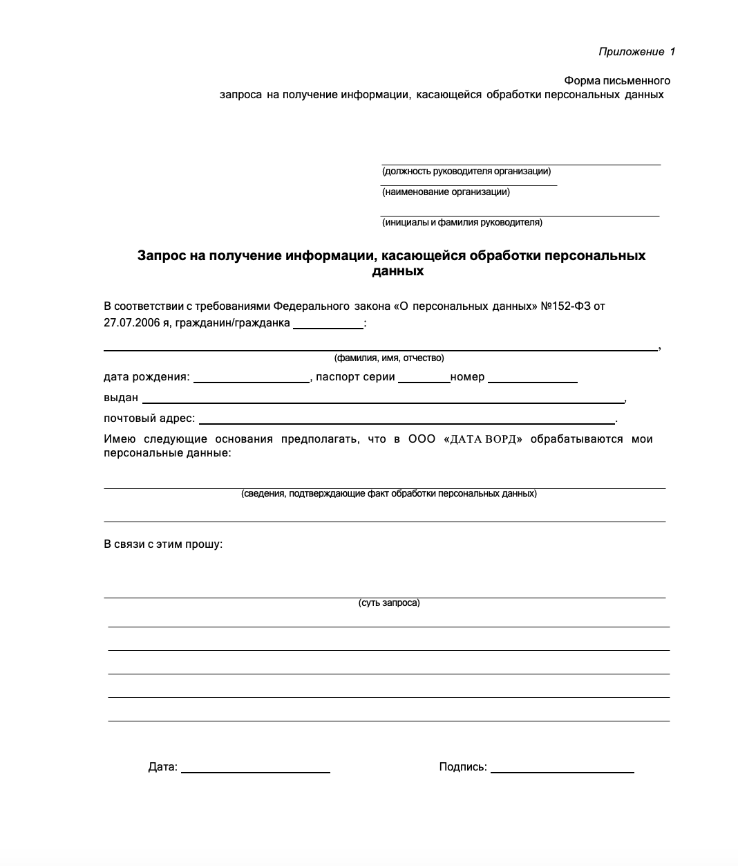 5.3. Запрос должен быть в письменной форме с указанием паспорта или документа субъекта.